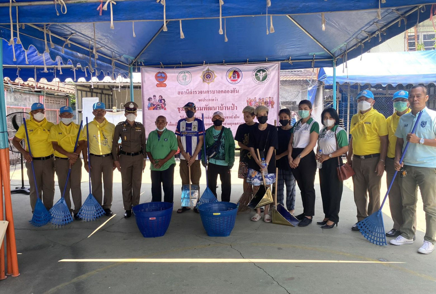 พ.ต.อ.วชิรากรณ์ วงศ์บุญ ผกก.สน.คลองตัน,ร.ต.อ.โชคชัย โคตรสาขา รอง สวป.สน.คลองตัน พร้อมด้วย ชุดปฏิบัติการชุมชนยั่งยืนและเจ้าหน้าที่ สาธารณสุข 37 และคลีนิคก้าวใหม่ วัดธาตุทอง จัดกิจกรรมกระบวนการบำบัด พร้อมกิจกรรมจิตอาสา เราทำความดีด้วยหัวใจ ณ สนามกีฬาชุมชนร่วมพัฒนาบ้านป่า พัฒนาการ 20 แยก10 แขวง-เขตสวนหลวง กรุงเทพฯ เพื่อเป็นการขับเคลื่อน โครงการชุมชนยั่งยืน