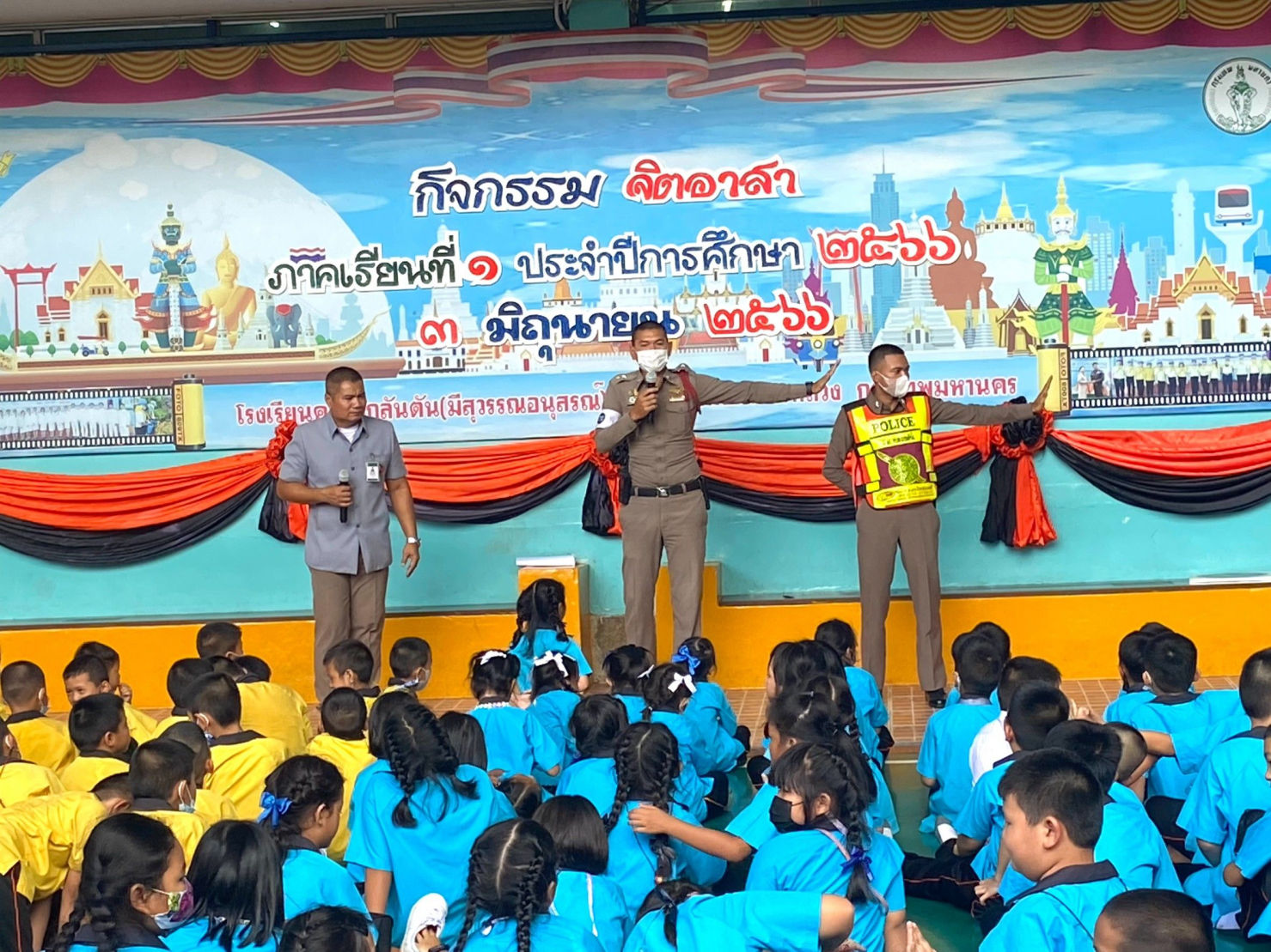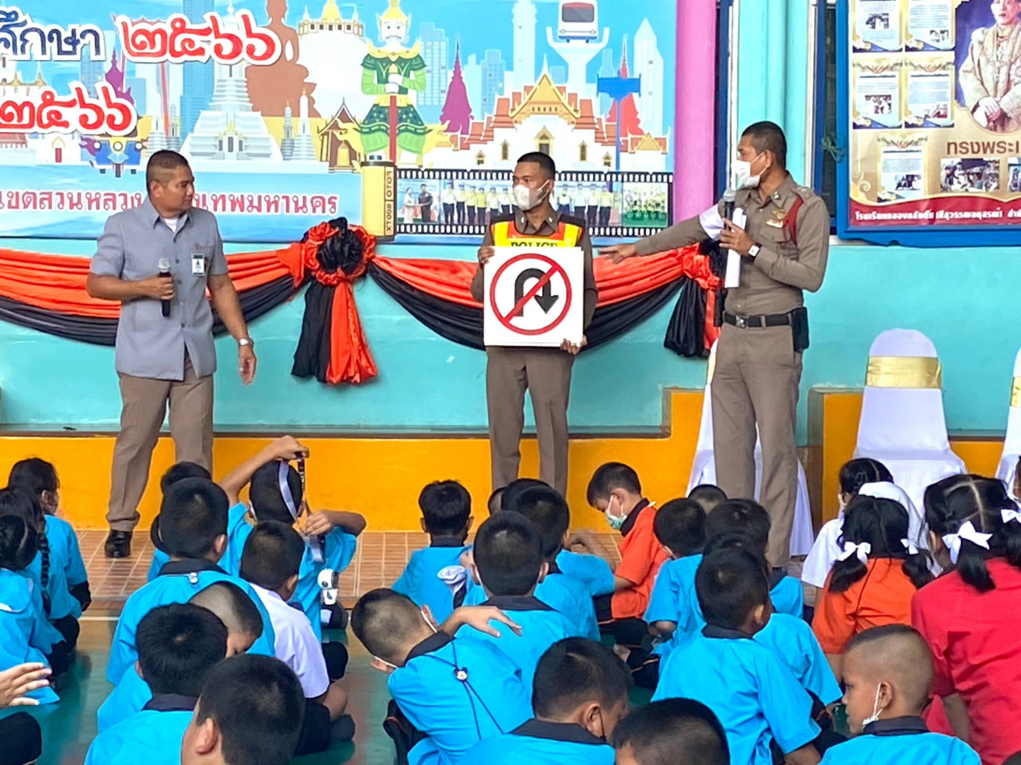 รองผกก.ป.สน.คลองตัน โดย พ.ต.ต.สุทัศน์ ฐานบำรุง สวป.สน.คลองตัน มอบหมายให้ร.ต.อ.โชคชัย โคตรสาขา รอง สวป.สน.คลองตัน และ ร.ต.อ.วรากร เพชรพิรุณ รอง สว.จร.สน.คลองตัน พร้อมเจ้าหน้าที่จราจร และชุด ตชส.สน.คลองตัน บรรยายให้ความรู้เรื่องกฎจราจรและความปลอดภัยบนท้องถนนอีกทั้งสาธิตการเอาตัวรอดจากเด็กเล็กติดในรถตู้รับส่งเด็กนักเรียน