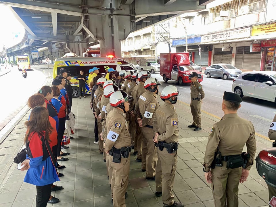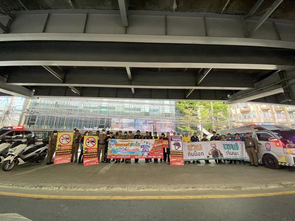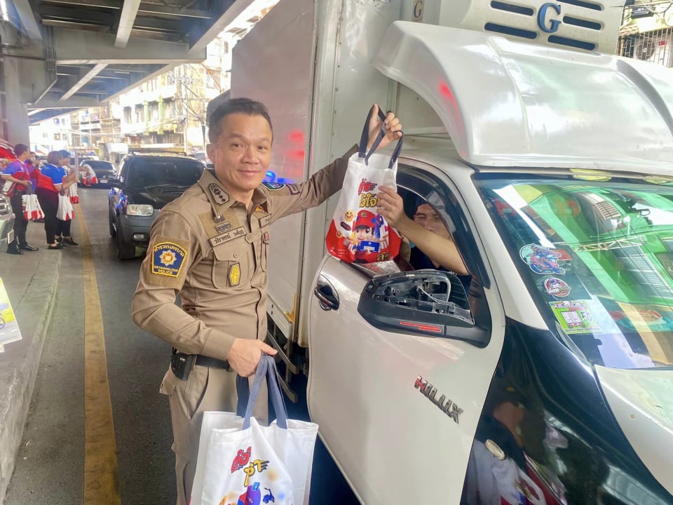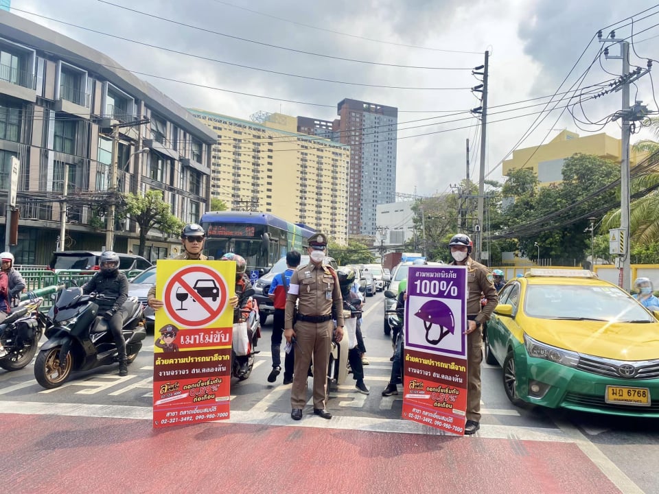 พ.ต.อ.วชิรากรณ์ วงศ์บุญ ผกก.สน.คลองตัน พ.ต.ท.ณริศ หาญจริง รอง ผกก.จร.สน.คลองตัน พ.ต.ต.สหรัฐ จันทร์ทาทิพย์ สว.จร.สน.คลองตัน ร่วมกับเจ้าหน้าที่ตำรวจจราจร สน.คลองตัน ,สำนักงานเขตสวนหลวง และภาคประชาชน ร่วมรณรงค์ขับขี่ปลอดภัย เนื่องในวันสงกรานต์ ประจำปี 2567