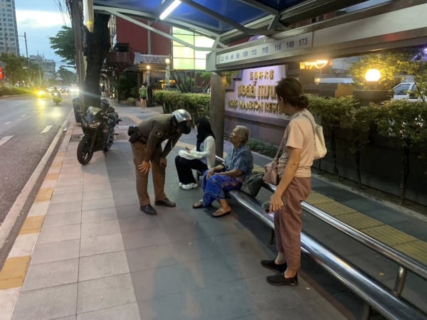 เจ้าหน้าที่ตำรวจสายตรวจ สน.คลองตัน พาคุณยาย ชวนขื่น (สงวนนามสกุล) (ผู้ป่วยอัลไซเมอร์) จากบริเวณป้ายหยุดรถประจำทางหน้าบอสแมนชั่น ถ.พระรามสี่ ส่งหาญาติบริเวณชุมชนเคหะนครวัชรพล 3 จตุโชติ 20