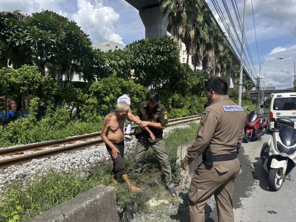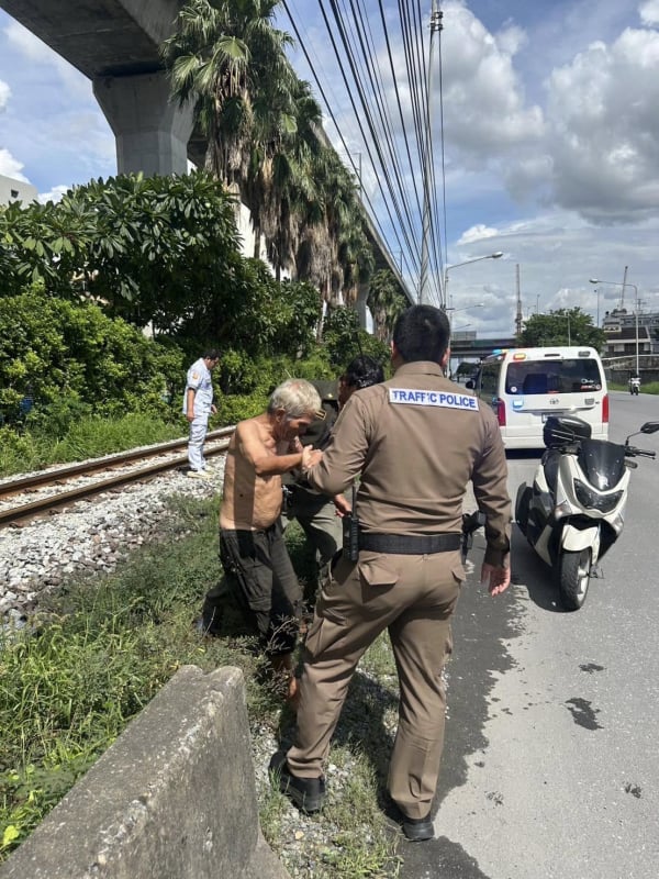 ได้พบเจอชายชราตกข้างทางริมทางรถไฟฝั่งนาซ่าเจ้าหน้าที่ตำรวจจราจร คลองตัน 6656 และคลองตัน 6659 ได้ประสานกู้ภัยให้ปฐมพยาบาลเบื้องต้นและนำส่งที่พักเรียยร้อย