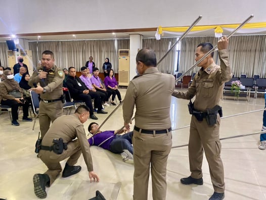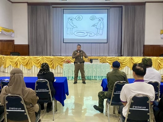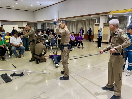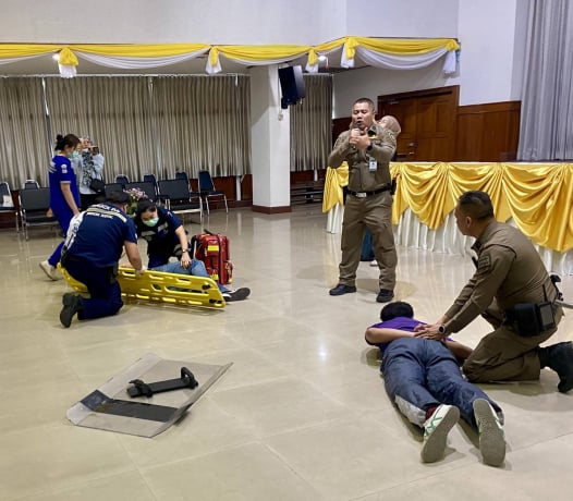 บรรยายให้ความรู้และจำลองสถานการณ์การเผชิญเหตุบุคคลคุ้มคลั่งและการส่งต่อบุคคลที่มีอาการทางจิต โดยมีผู้ร่วมกิจกรรมจำนวน 125 คน