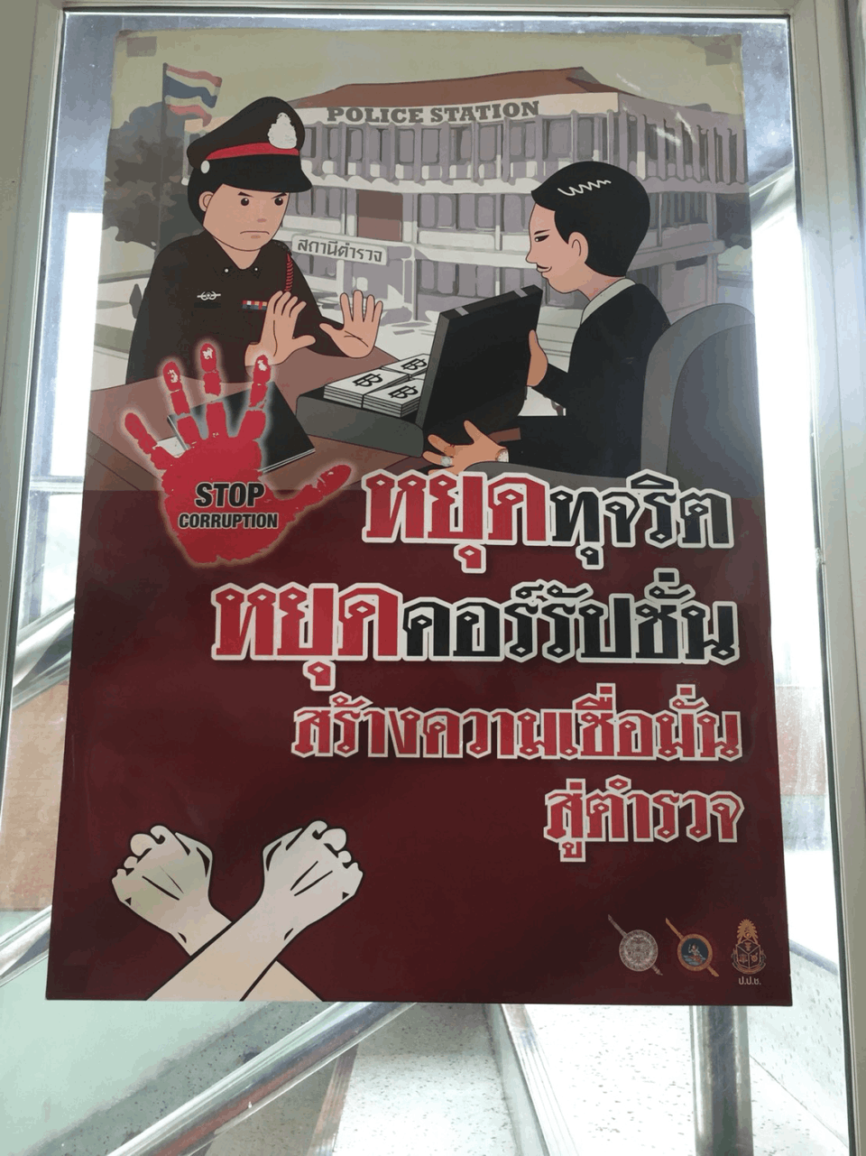 ติดป้ายประชาสัมพันธ์และประกาศจุดยืนต่อต้านการทุจริต คอร์รัปชั่น ห้ามไม่ให้ข้าราชการตำรวจ สน.คลองตัน ประพฤติตนเกี่ยวข้องกับการทุจริต