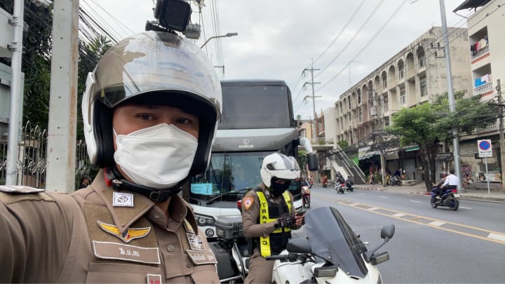 พ.ต.ท.สหรัฐ จันทร์ทาทิพย์ สว.จร.สน.คลองตัน พร้อมด้วยเจ้าหน้าที่ตำรวจจราจร สน.คลองตัน
