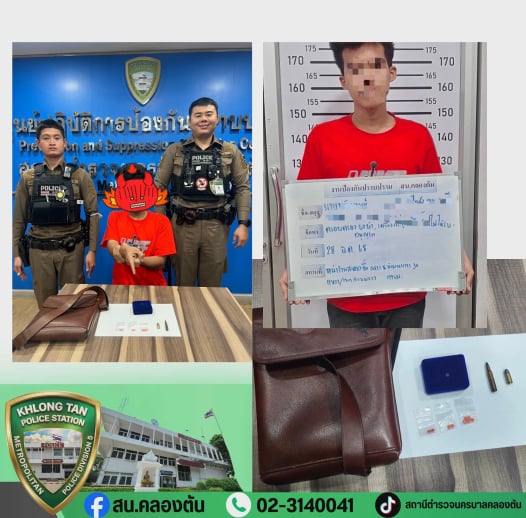 พฤติการณ์: วันนี้ ( 28 ธ.ค.68 ) เวลา ประมาณ 02.00 น. ขณะที่เจ้าหน้าที่ตำรวจชุดจับกุมกำลังออกตรวจพื้นที่รับผิดชอบ เมื่อถึงบริเวณหน้าร้านสะดวกซื้อ กลางซอยพัฒนาการ 30 ถ.พัฒนาการ แขวงสวนหลวง เขตสวนหลวง กรุงเทพมหานคร พบนาย นวัตกรณ์ (ไอซ์) (ทราบ ชื่อ-นามสกุลภายหลัง) ยืนอยู่หน้าร้านสะดวกซื้อบริเวณดังกล่าวท่าทางมีพิรุธ เมื่อเห็นเจ้าหน้าที่ตำรวจได้แสดงอาการลุกลี้ลุกลน จึงได้แสดงตนเป็นเจ้าหน้าที่ตำรวจขออนุญาตตรวจค้น โดยก่อนการตรวจค้นได้แสดงความบริสุทธใจจนเป็นที่พอใจของนายนวัตกรณ์ แล้วลงมือตรวจค้นโดยมีแสงส่องสว่างจากกระบอกไฟฉายเห็นได้ชัดเจน ผลการตรวจค้นพบของกลางลำดับที่ 1-4 ซุกซ่อนอยู่ใน ของกลางลำดับที่ 5 ที่ผู้ถูกจับสะพายอยู่ สอบถามผู้ถูกจับยอมรับว่ายาเสพติดฯดังกล่าว ที่เจ้าหน้าที่ตรวจยึดได้เป็นของตนเองจริง เจ้าหน้าที่ชุดจับกุมจึงแจ้งข้อกล่าวหาให้ทราบว่า มียาเสพติดให้โทษประเภท 1 เมทแอมเฟตามีน(ยาบ้า) ไว้ในความครอบครองโดยไม่ได้รับอนุญาต และครอบครอบเครื่องกระสุนปืนโดยไม่ได้รับอนุญาต จึงควบคุมตัวผู้ต้องหามายังห้องป้องกันปราบปราม สน.คลองตัน สอบถามผู้ต้องหายอมรับว่ายาบ้าเป็นของตนจริง โดยซื้อมาในราคาเม็ดละ 50 บาท จากชายไม่ทราบชื่อ รูปร่างผอมผิวแดง-ดำ อายุประมาณ 35 ปี บริเวณ กลาง ซ.พัฒนาการ 32 ถ.พัฒนาการ แขวง/เขตสวนหลวง กรุงเทพ เพื่อเสพ แต่ยังไม่ได้เสพ ถูกจับกุมเสียก่อน เจ้าหน้าที่ตำรวจจึงขอตรวจสอบสารเสพติดในปัสสาวะเบื้องต้น โดยผู้ต้องหายินยอม ผลปรากฏเป็นลบ หมายถึงไม่พบสารเสพติดภายในร่างกายผู้ถูกจับ เจ้าหน้าที่ตำรวจจึงได้แจ้งข้อกล่าวหาและแจ้งสิทธิให้ทราบพร้อมนำตัวพร้อมของกลางนำส่งพนักงานสอบสวนเพื่อดำเนินการตามกฎหมายต่อไป